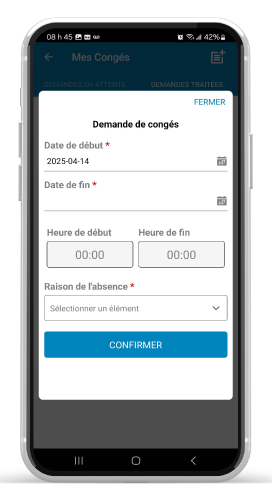 Avec S.T.A, les demandes d’absence sont faciles à faire et à gérer. Les employés peuvent soumettre leurs demandes de congé en ligne directement depuis l’application mobile, que ce soit pour des vacances, une absence familiale, un rendez-vous médical ou un congé maladie. Plus besoin de courriels ou de formulaires papier : tout se fait au même endroit.